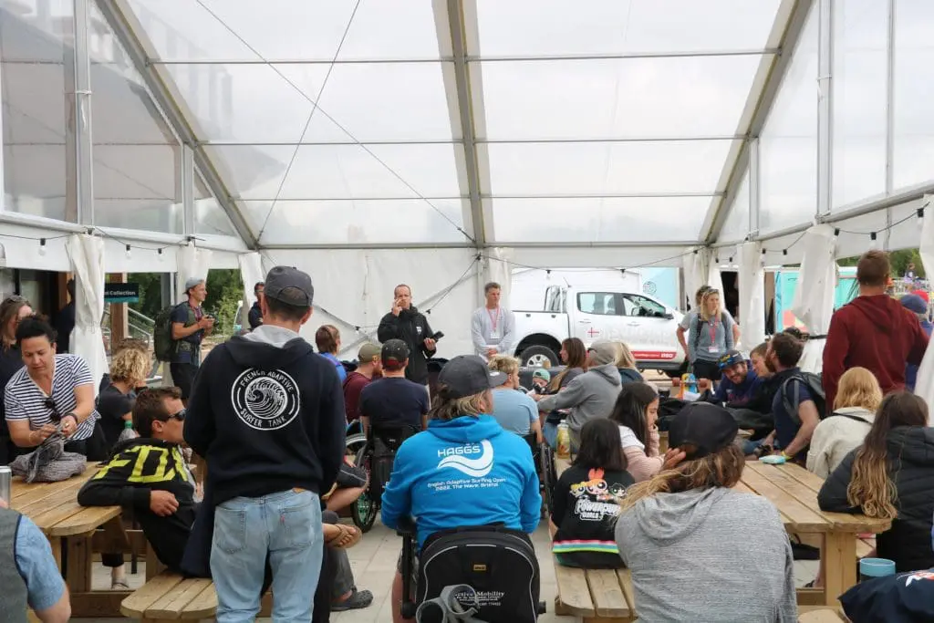 On Thursday 7th July 2022, SurfDek visited The Wave in Bristol for the English Adaptive Surfing Open 2022, supported by Surfability UK and The Wave Project. Competitors from all of the world gathered to compete in Bristol’s wave pool and were greeted by a glorious day of sunshine to go with it. It was inspiring to see so many people with disabilities completely overcoming them and not only riding waves, but performing in the surf.