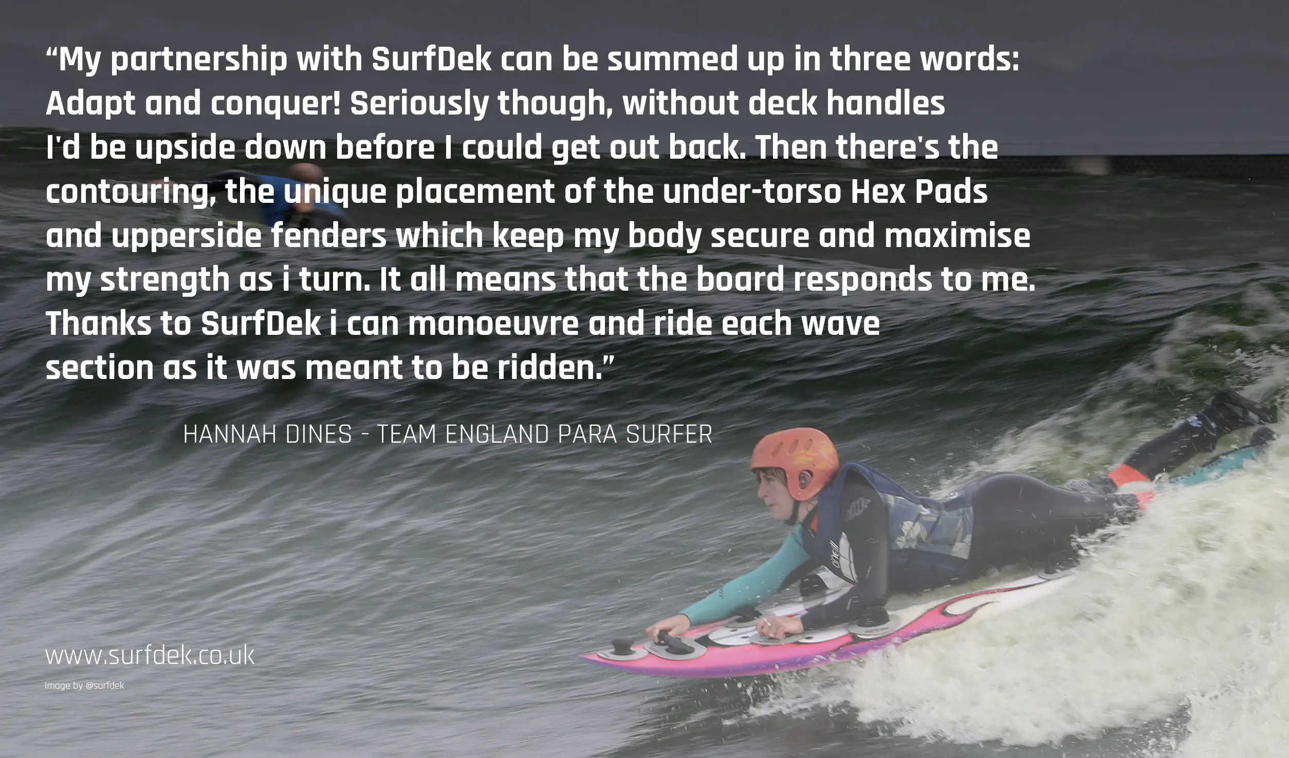 Grips, handles, fenders, elbow cups, chest risers, chin rests and completely customised traction pads for para surfers, adaptive surfers and their support teams.
