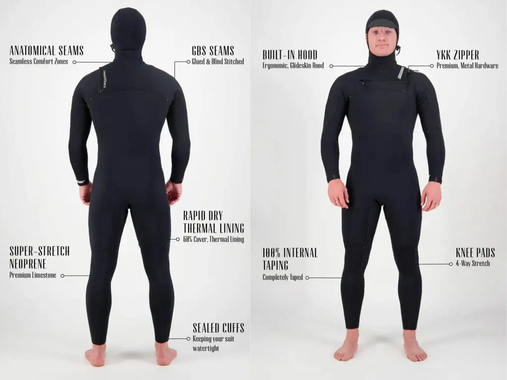 Sealed Cuffs Prevents your wetsuit from stretching around the wrists and ankles, keeping your suit watertight even after years of use |