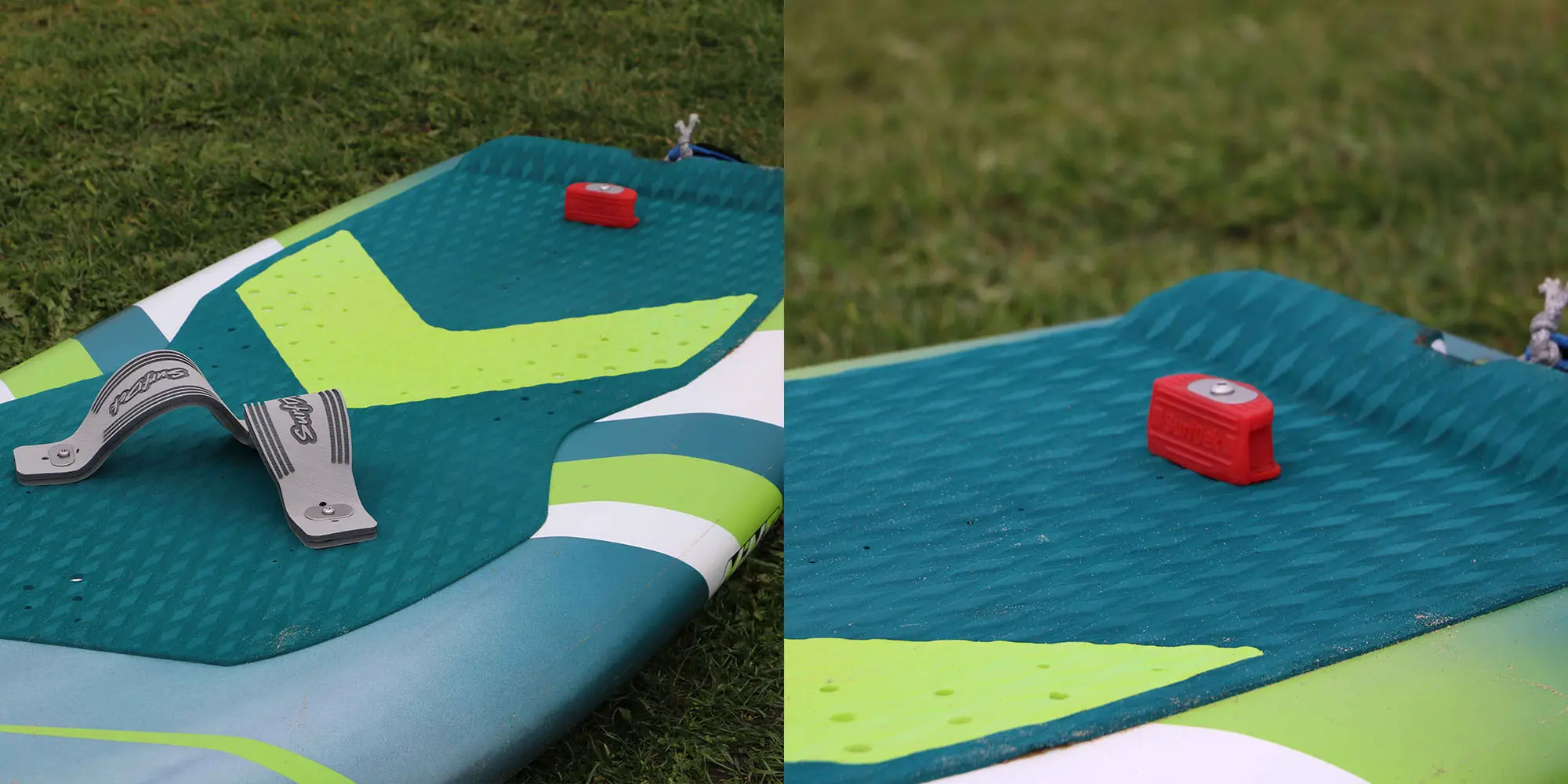 Great for learning to ride a hydrofoil, experimenting with foil positioning or learning to pop up from a prone position. Sturdy to put your foot up against with just enough flex for safe impact. Manufactured in the UK from MG-Matrix-40™, which is a polymer created by SurfDek specifically for the purpose of surfboard traction.