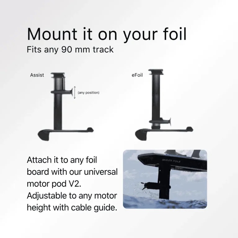 Includes everything you need to transform your current foil and board into a high-performance electric-assisted foiling machine.