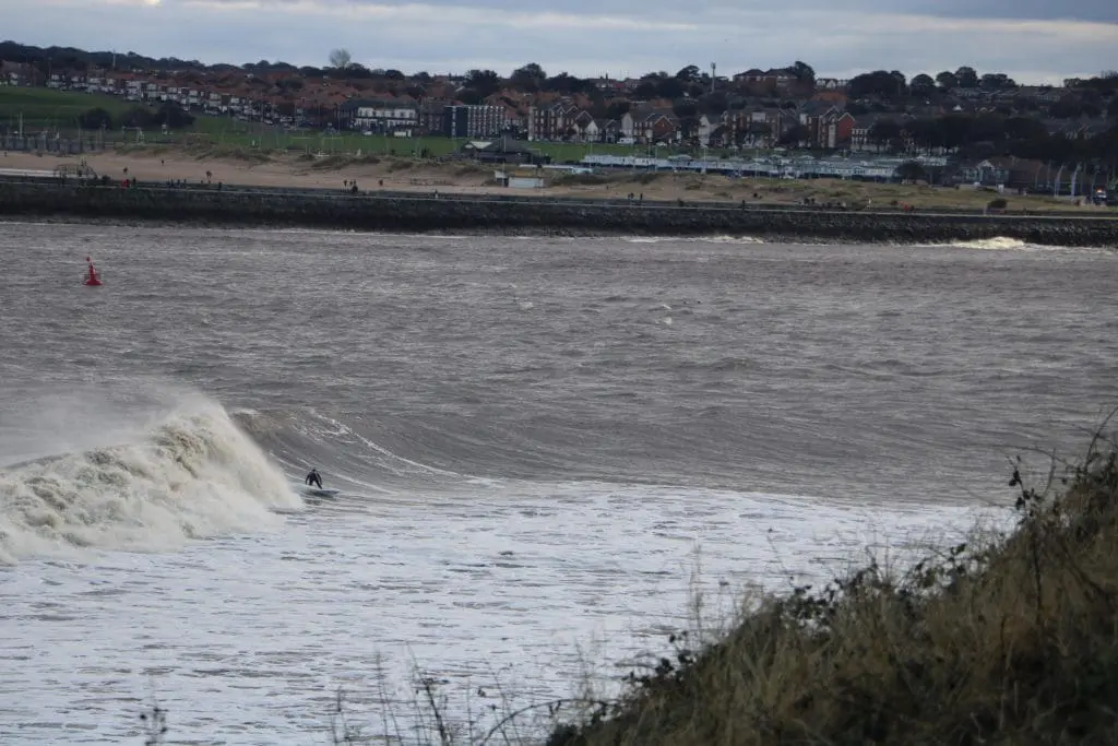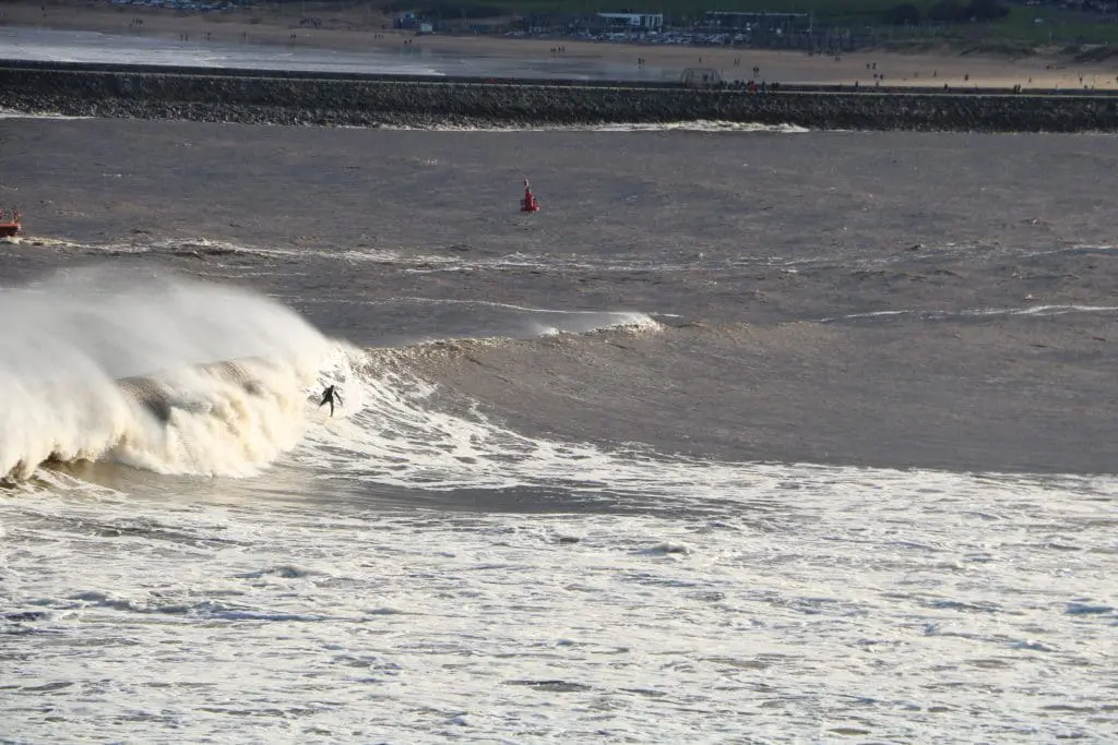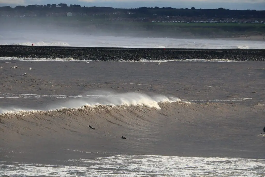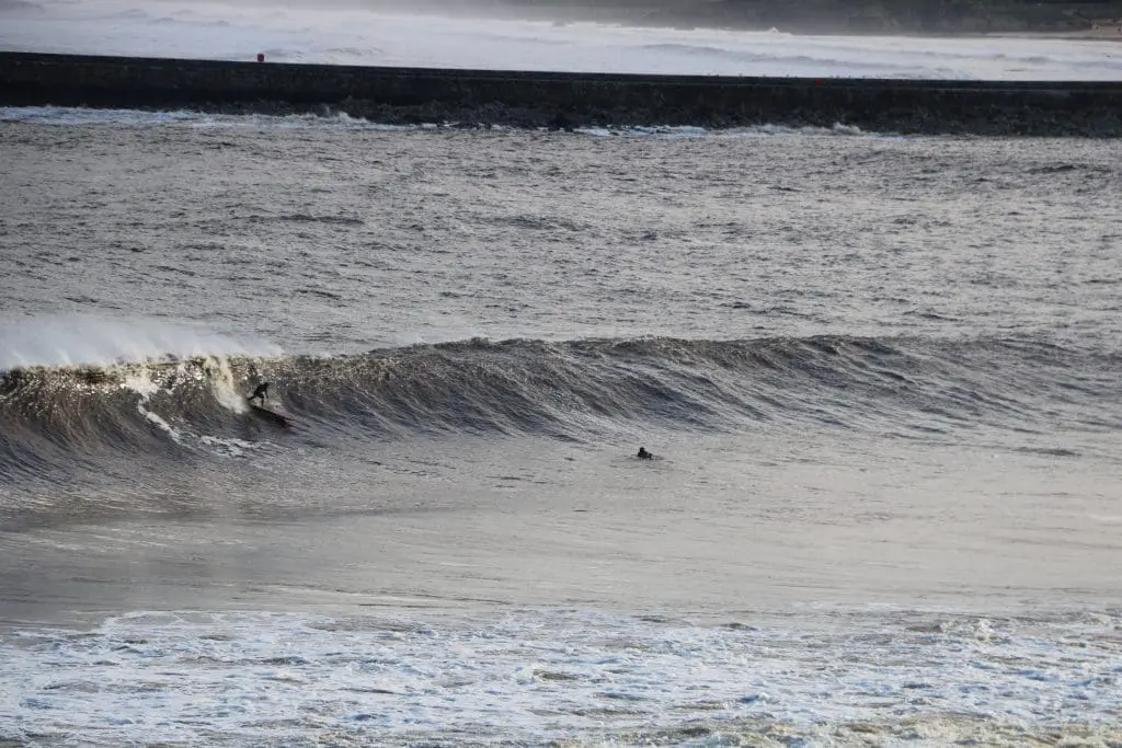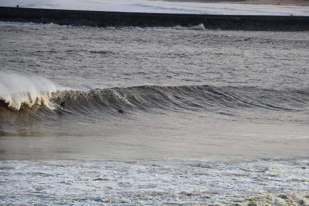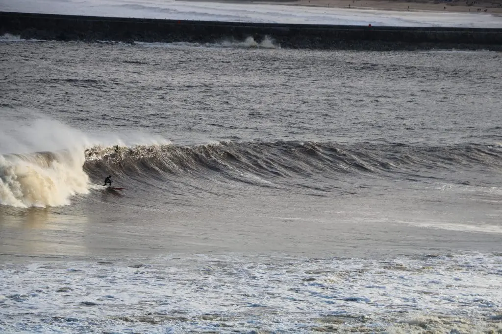 Storm Babet barrelled into the UK last week, causing chaos to a number of areas. After a day of 50mph+ onshore winds on Friday 20th October, the sustained huge ENE swell (25ft @ 12 seconds) brought Tynemouth’s The Middens wave to life on Saturday 21st. Lighter offshore wind meant for a big, knarled yet groomed-in-places left hander for a handful of surfers (including local legend Gabe Davies and one balls-ey paddleboarder) at this famous North East river mouth.